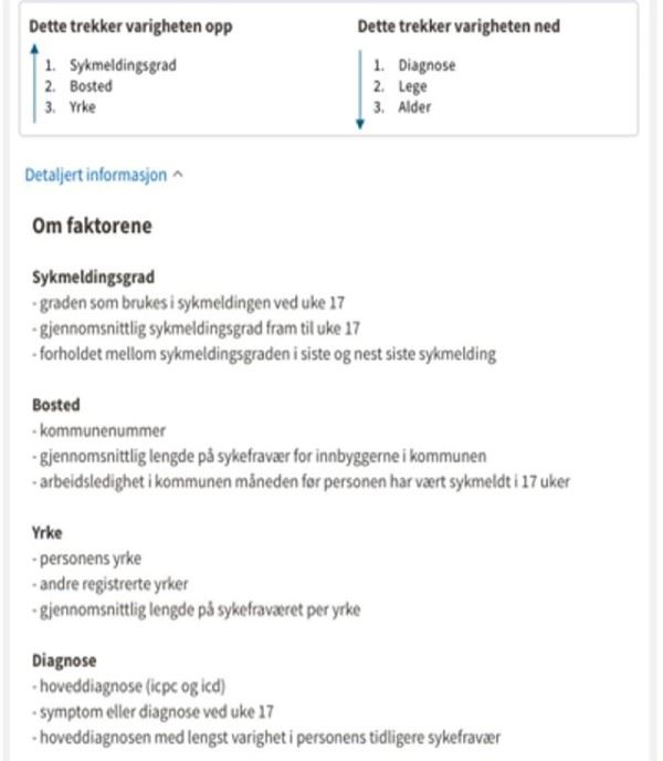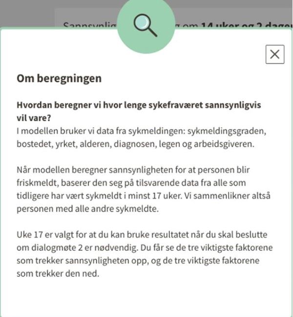 Her er et eksempel på hvordan en generell forklaring om hvordan modellen opererer, kan se ut for veilederen som bruker systemet.